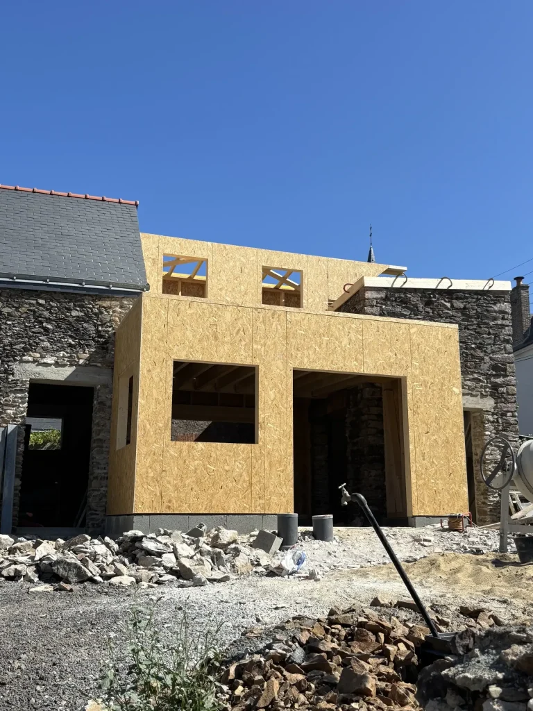 L’ossature bois est une solution moderne, écologique et rapide pour vos projets d’extensions, de rehaussements ou de dépendances. Nous réalisons ces derniers selon vos exigences, adapter sur-mesure et parfaitement intégrées à l’existant. Que ce soit pour agrandir une maison, créer un étage supplémentaire ou moderniser la façade avec un bardage bois ou autres. Nous vous accompagnons de la conception à la pose. Nous utilisons des matériaux performants pour une construction durable, esthétique et performante en isolation.